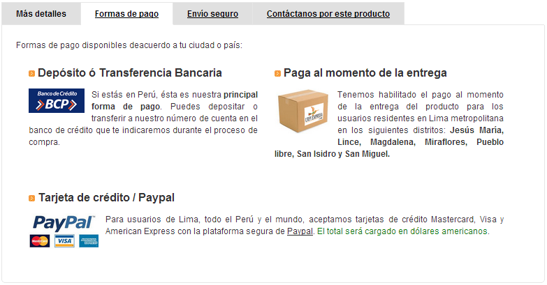 yompiam Posted December 31, 2012 Share Posted December 31, 2012 (edited) Hola a todos. Existirá alguna forma de poner en las "pestañas de descripción" (imagen 3.png) del producto estas opciones como una de ellas: Forma de pago Envió Seguro Contáctenos por este producto (sale etiqueta para rellenar datos del usuario) Adjunto imagen como debería de estar. (imagen 4.png) Gracias. Edited December 31, 2012 by yompiam (see edit history) Link to comment Share on other sites More sharing options...