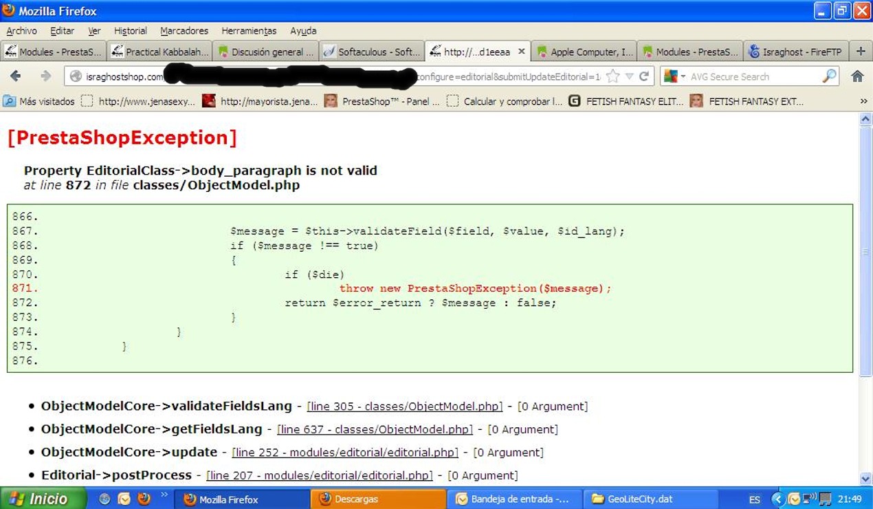 junnecito Posted January 6, 2013 Share Posted January 6, 2013 Buenas noches a tod@s: Estoy con una instalación nueva de 1.5.3.1, todo bien, trato de cambiar el texto en el módulo Home Text Editor y me es imposible, cundo le doy a guardar me sale [PrestaShopException] Property EditorialClass->body_paragraph is not valid at line 872 in file classes/ObjectModel.php No tengo ni idea de todo esto, podría algúien decirme porfavor dende mirar o mejor dicho que hacer para corregir? Adjunto pantallazo Muchas gracias por las respuestas... Link to comment Share on other sites More sharing options...