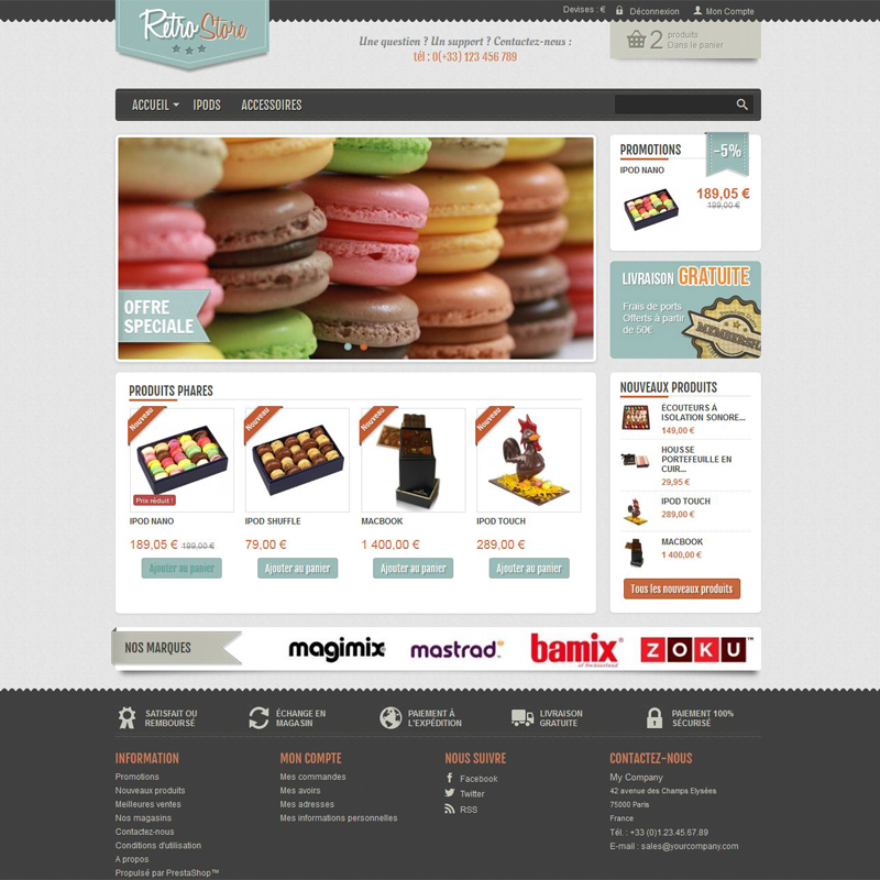 Atch Posted January 11, 2013 Share Posted January 11, 2013 Bonjour, Mise à jour du thème Jailbreak 1.4 pour Prestashop 1.5 Quelques améliorations ont été apportées à ce thème par rapport à la version 1.4. - Thème 100% responsive ( Slide + Carousels + tableaux) + fonction Swipe/Touch - Carrousel Fabricants - Rich Snippets Intégré sur la page produit et commentaires Thème compatible : 1.5.3.1 (et versions inférieures) Compatible sur navigateurs : IE7-->IE X, Safari, FF, Opera, Chrome. Prix : 80€ (Pour les possesseurs du thème Jailbreak 1.4 : -40% de remise) La démo est visible à cette adresse : http://demo.atchworks.com/retro/ Le thème est disponible ici : http://www.atchworks...stashop-15.html V++ Atch Link to comment Share on other sites More sharing options...