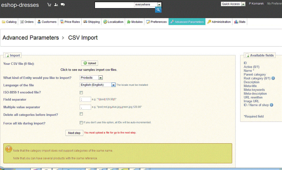 komaj Posted January 12, 2013 Share Posted January 12, 2013 After 1.5.3 version I am not able to upload any CSV file, the upoad button does not work and when changing the uploaded entities (products, category, ..) the values does not change in the available fields. Other issue is that I am not able to add new product or category, when click on button add new product blank page will appear. Any idea where is the problem? Thank you! komaj Link to comment Share on other sites More sharing options...