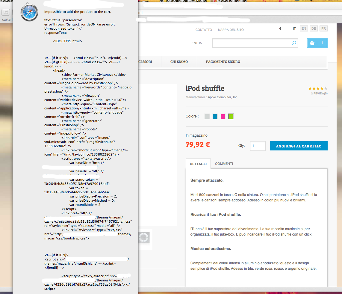 Praticamente quando vado nella pagina del prodotto e aggiungo il prodotto certe volte lo inserisce nel carrello altre invece mi da questo errore