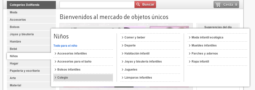 En la página principal tienen un menú con categorías 'padre' que despliega las categorías de primer nivel como muestro en la imagen 1.