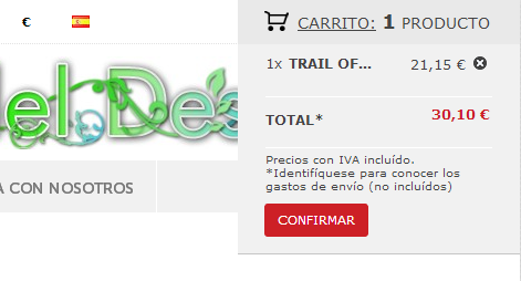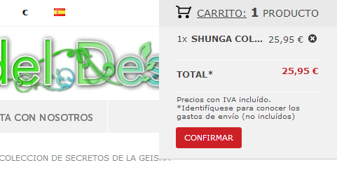 Para ello, de la ventana emergente del carrito, he dejado solamente la información del TOTAL (que es el total del pedido sin los gastos de envío).