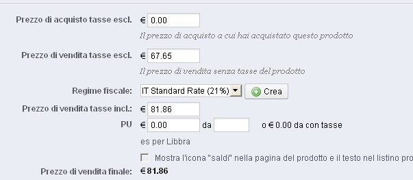 lorenz0 Posted January 15, 2013 Author Share Posted January 15, 2013 Nel Dubbio Vi posto le Immagini Il Prodotto Il gruppo Le tasse Il Carrello ed il checkout Ora, vorrei sapere per favore, dove sbaglio per avere l'Iva Solo nel Carrello questi setting sono stati cambiati infinite volte ma senza risultato apprezzabile coem detto, mi pare, è stato installato 1.5.2 e poi fatto upgrade a 1.5.3.x mille grazie a chi può aiutarmi Link to comment Share on other sites More sharing options...