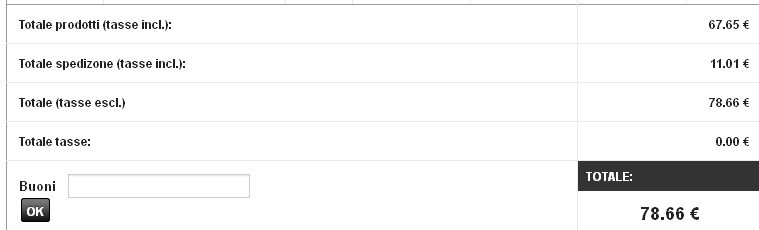 Enoteca Posted March 29, 2014 Share Posted March 29, 2014 ok, risolto, la procedura è questa: 1) mettere "tasse escluse" nei gruppi (visiors, guest, customer) 2) ma in ogni singolo prodotto mettere il prezzo e scegliere comunque il regime fiscale. Se non si fa il punto 2) la scritta "totale tasse" nel checkout rimane a zero. Link to comment Share on other sites More sharing options...