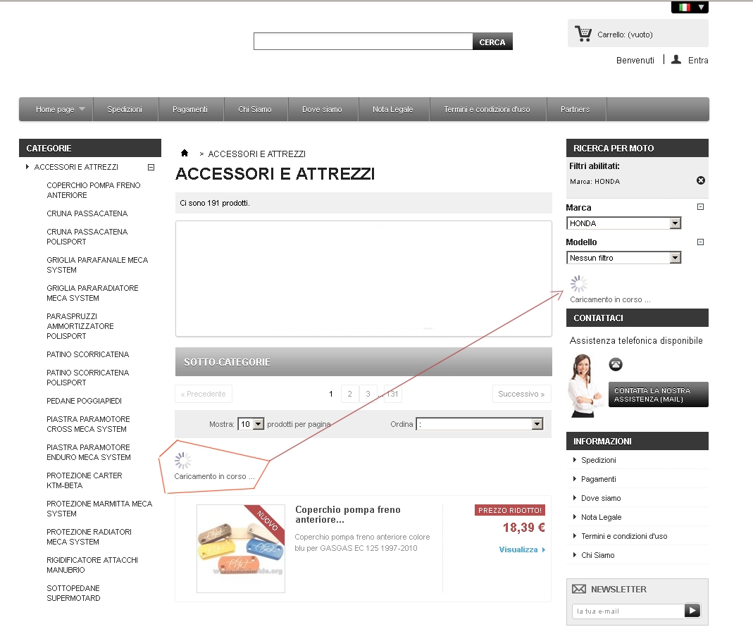 Strady77 Posted January 17, 2013 Share Posted January 17, 2013 Buongiorno a tutti, avrei la necessità di fare una modifica al blocco di navigazione a strati. La modifica è abbastanza semplice e consiste solo nel far apparire la gif animata "caricamento in corso" invece che sopra all'elenco dei prodotti dovrebbe apparire sotto all'ultimo menu select ma sempre dentro al blocco di navigazione a strati. Ho guardato il file blocklayered.tpl e in fondo c'è la gestione della gif che mi interessa: <div id="layered_ajax_loader" style="display: none;"> <p><img src="{$img_ps_dir}loader.gif" alt="" /><br />{l s='Loading...' mod='blocklayered'}</p> </div> </div> {else} <div id="layered_block_left" class="block"> <div class="block_content"> <form action="#" id="layered_form"> <input type="hidden" name="id_category_layered" value="{$id_category_layered}" /> </form> </div> <div style="display: none;"> <p style=""><img src="{$img_ps_dir}loader.gif" alt="" /><br />{l s='Loading...' mod='blocklayered'}</p> </div> </div> Non capisco però quale variabile utilizzare per abilitare e disabilitare la visualizzazione della gif o se posso effettuare questo spostamento tramite CSS. Potete aiutarmi? l'immagine in allegato spiega meglio di 1000 parole quello che vorrei fare Link to comment Share on other sites More sharing options...