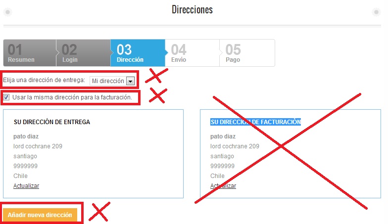 patriciodilet Posted January 20, 2013 Share Posted January 20, 2013 (edited) Es posible hacer esto?? Necesito dejar solo la dirección de entrega. En el paso 3 necesito dejar solo el cuadro "dirección de entrega" y quitar "dirección de facturación", quitar la opción para elegir dirección de entrega y quitar el boton para añadir nuevas direcciones. Dejo un print de pantalla. Muchas gracias! Edited January 22, 2013 by patriciodilet (see edit history) Link to comment Share on other sites More sharing options...