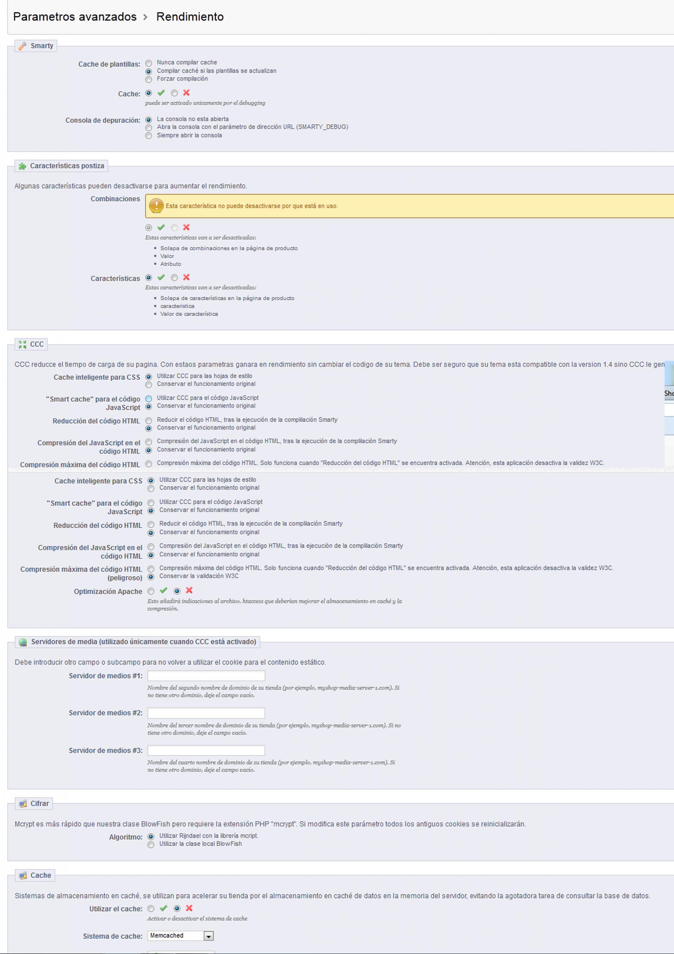 antoniocorres Posted January 25, 2013 Author Share Posted January 25, 2013 Hola, gracias a todos por responder. La tienda está alojada en el maldito 1and1 porque iba a tener pocos productos (en principio sin combinaciones), cuando fuimos metiendo productos resulta que el cliente quería 21 combinaciones para la mayoría de productos que resultaron ser cerca de 400, cosa que destrozó la administración y su carga. Voy a cambiar de servidor de inmediato, ¿a uno tipo OVH o Arsys?, se admiten recomendaciones. El frontend funciona correctamente, pero el backend no va bien, nada bien, muy lento y te salta error con cualquier cosa que toques. Saludos y gracias a todos por responder... (adjunto la imagen de la configuración de rendimiento que no se veía, aunque ya me habéis dado la solución de cambio de servidor) Link to comment Share on other sites More sharing options...