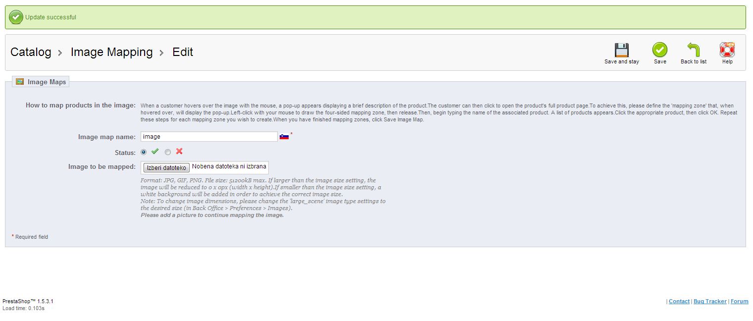 I have a problem with image mapping. When I browse to load an image I then click on Save or Save and Stay button nothing happened (please see attached image).