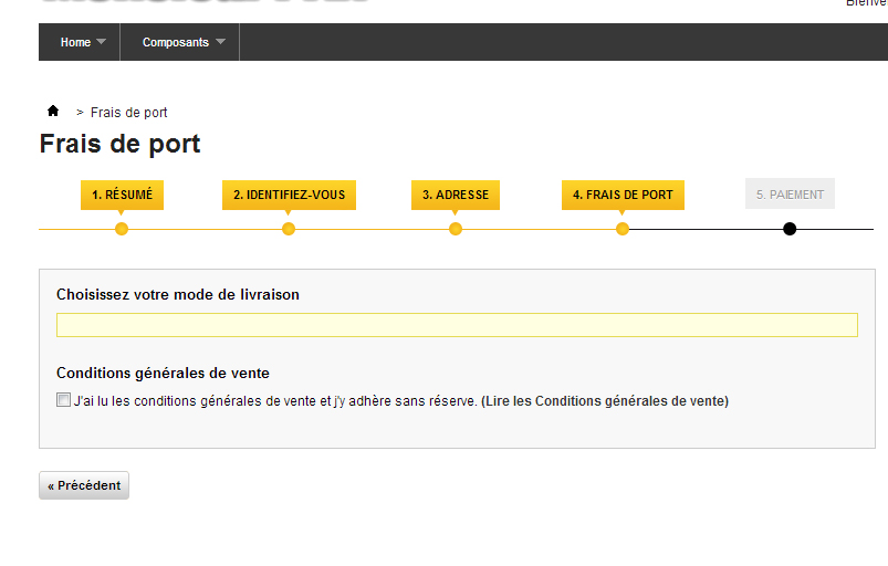 ymergui Posted January 24, 2013 Share Posted January 24, 2013 Salut a tous, Je suis vraiment désespéré Apres avoir verifie plusieurs fois et pendant plusieurs heures mes parametres de transport j arrive toujours au meme resultat : a la caisse aucun transporteur n apparait! et seulement la ligne qui parle des CGV apparait. D autre part les Frais de port apparaissent comme gratuits en permanence dans le panier. Si quelqu'un pouvait m aider je serai vraiment soulager car je ne peux plus recevoir de commandes sur mon site ! Merci Yann Link to comment Share on other sites More sharing options...