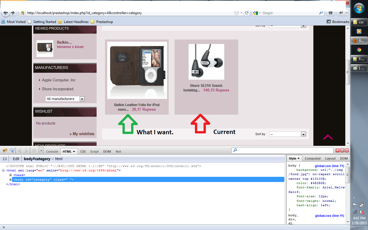 himansu_29 Posted January 26, 2013 Share Posted January 26, 2013 Hi guys, I have been trying to get the image size right for some time without any success. please help me out on this. I also tried finding a solution from previous post with no success. (may be I am not doing it right or novice enough to do it right) I have two major requirement. I am attaching the screenshots. pic 1: the product image is overshooting the display area. pic 2: need to change the thumbnail size of the product. tried the preference-->images tab with various permutation and combination, it didnt work(or i may be doing it wrong) It will be very helpful, if someone can explain what exactly the preference-->images tool does. Thanks in advance. Link to comment Share on other sites More sharing options...
