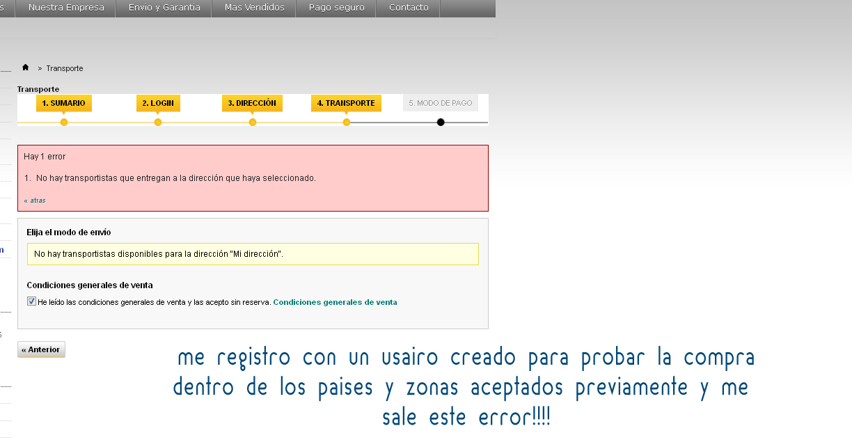hopeingod Posted January 31, 2013 Author Share Posted January 31, 2013 Mi error ha sido pensar que eras de España y no había visto que tienes desactivado Europa y sólo tienes activado Argentina y EEUU, donde supongo que la legislación al respecto es diferente. Pero en cualquier caso no hace falta gritar (mírate las reglas del foro). Aquí cada uno intentamos aportar nuestros conocimientos a los demás de forma gratuita, sin ningún tipo de obligación y sólo por eso nos merecemos un respeto. Y hay muchas veces que la solución es más simple de lo que parece y no es un tema de parametrización, sino de operativa. no sabia que estaba gritando. nunca posteo en foros, es por las mayusculas? no creo haber faltado el respeto, simplemente confundistes las cosas, como te dije antes uno puedo poner el precio con el iva incluido y estar cobrando el iva. lo que no quiero es mostrar un carrito donde ahi 4 agregados al precio original del producto. pongo todos los agregados en el precio del producto y quiero poner solo el precio total. de todas maneras eso es lo de menos lo que mas me importa es que no me ponga ese error de no ahi transportistas que manden a su direccion y si tengo que agregar 10 precios mas(iva,trasnporte,iva del transporte, etc.) los agrego. no se porque piensan que uno grita o que no respeta. a veces lo que se ve en los demas es el reflejo de uno mismo! habra algun experimentado en el foro que pueda dar una mano??? Link to comment Share on other sites More sharing options...