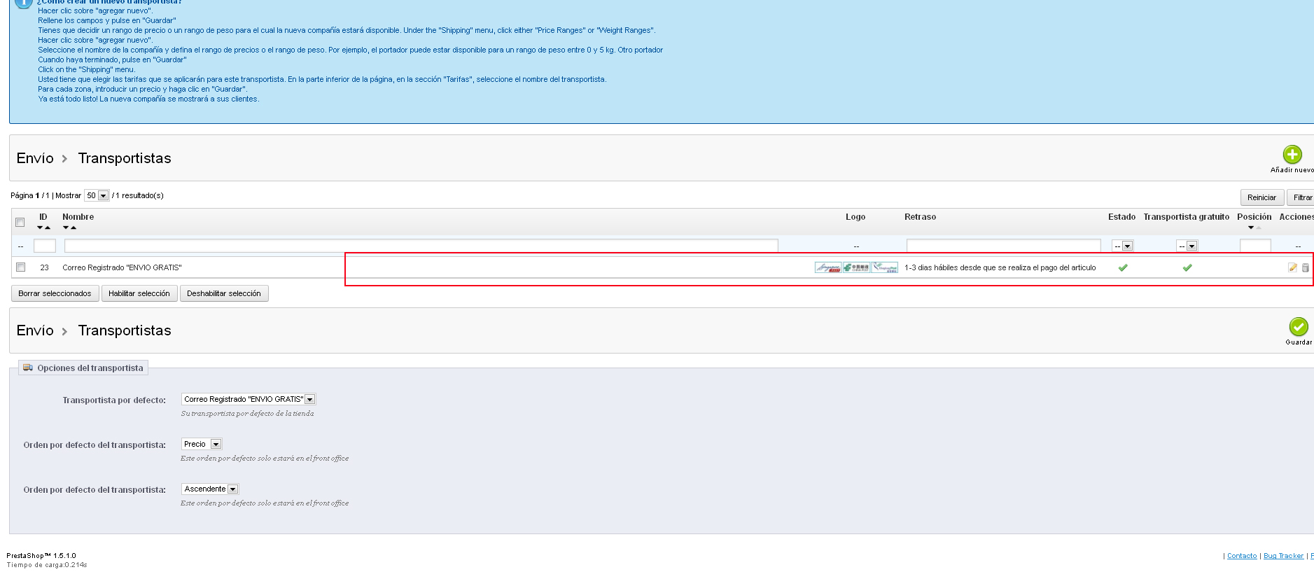 hopeingod Posted January 30, 2013 Share Posted January 30, 2013 buenas, les dejo toda la configuracion en imagenes a ver que me esta faltando o en que estoy fallando. porque me estoy volviendo loco. agradeceria mucho su ayuda. el envio en mi tienda es gratis y no quiero que se muestren los impuestos mi version es la 1.5.2 Link to comment Share on other sites More sharing options...