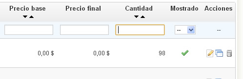 nadie Posted February 3, 2013 Share Posted February 3, 2013 Nadie Mil gracias por la ayuda, ya me salen las pestañas.. Una preguntica, si por ejemplo tengo un producto en el puesto 137 lo tengo que subir de a 1? ejemplo: 136, 135, 134, hasta que llegue a los primeros 8. O hay una manera de subirlo mas rapido? que lo pueda subir del puesto 137 a los primeros 8 en un solo paso? Un placer ayudarte y servirte! Si das el tema como solucionado, edita el titulo del tema, editando el primer mensaje, pulsando en editar, y después en "Usar editor completo", añadiendo la palabra "Solucionado" al titulo, esto ayudara, a mantener una mayor organización en el foro. Un saludo y recuerda que estaremos en el foro, para guiarte por este mundo oscuro y tenebroso. PD: Los productos, no los tienes por que subir de uno en uno, si señalas la flecha con el raton y mantiene el boton del raton pulsado y lo arrastras por ejemplo o para abajo de una tirada, te sube o baja de una tirada. Link to comment Share on other sites More sharing options...