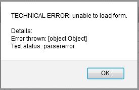 TECHNICAL ERROR: unable to load form.
