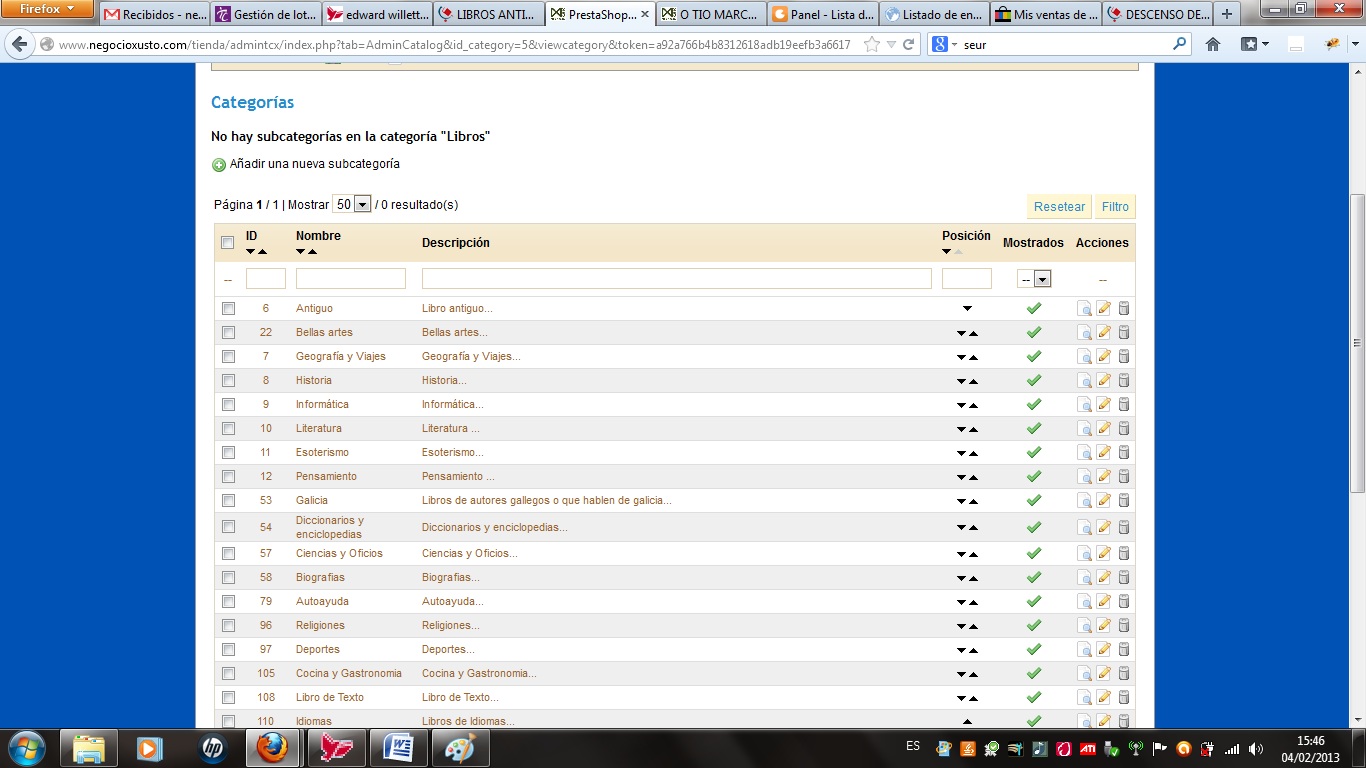 negocioxusto Posted February 4, 2013 Share Posted February 4, 2013 (edited) El otro dia ya plantee este problema que aun no he podido solucionar. Vereis en mi backoffice imaginar que en una categoria tengo 10 productos y en otra 20- En el back office marca que en la que tengo 10 tengo 30 y en la que tengo 20 marca 6, A que se puede deber este error en el numero de productos? Tambien me ocurre con las subcategorias imaginar que dentro de una categoria llamada libros tengo 10 subcategorias, pues en backoffice marca tambien mal el numero de subcategorias. gracias de antemano Os dejo una foto de un error pone que no hay sucategorias y sin embargo debajo salen 18 Edited February 4, 2013 by negocioxusto (see edit history) Link to comment Share on other sites More sharing options...