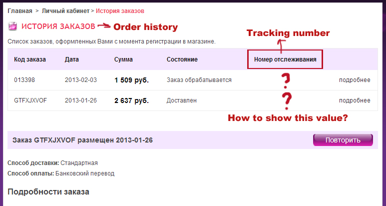 I'm trying to put tracking number from order details directly to order history (see attachment), but unfortunately I'm not a php coder so I don't know what to put in <td></td> for getting this variable.