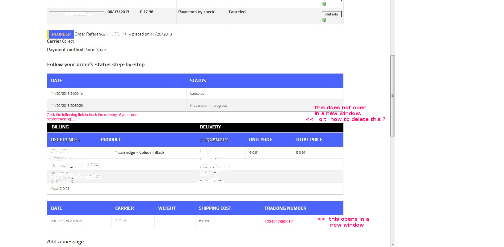 But how can i delete the first tracking link  OR MAKE IT to open also in a new browser window?  This is very important for me, so hopefully anyone can help with this.