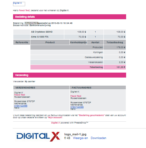 maroc1994 Posted February 15, 2013 Share Posted February 15, 2013 Er staat boven in de mail een afbeelding , dit is standaard het logo van je website of wat je hebt gekozen in de BO ( je mag er ook een foto van je schoonmoeder inzetten als je dat leuk vind ). en als ik op deze afb. klik kom ik bij de URL van mijn webpagina uit. Ik ben in elk geval nog nooit op een eventueel atachement uitgekomen. hierbij een foto met een attachement erbij. hier kan je zien dat je logo kan downloaden. Link to comment Share on other sites More sharing options...