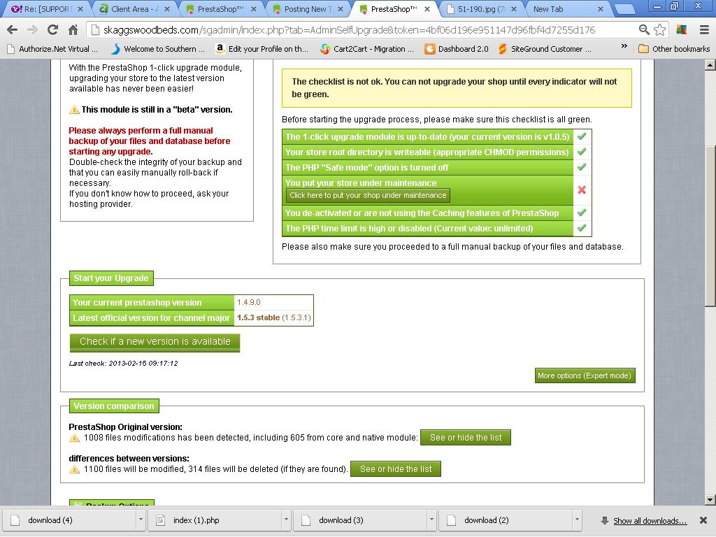 but I could not upgrade beyond 1.5.3 on my original server becuase of ajax errors, etc. So I tried going to a new host which gurantees to be a preferred prestahop host.