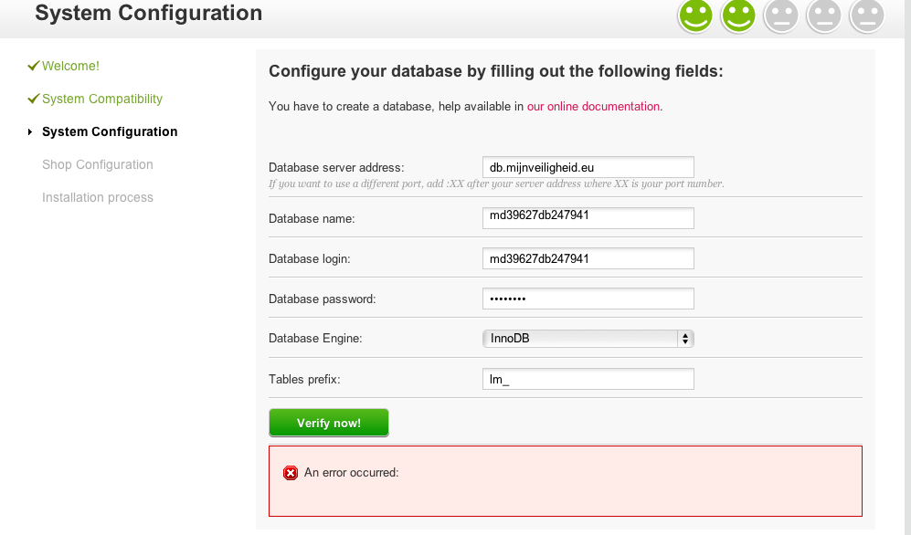 I have a problem with the database configuration...see the attachment, the password is correct and the dababase also...