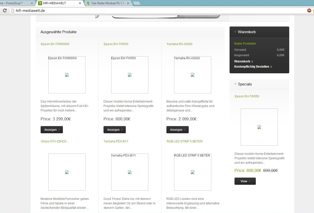 Timo-H-M Posted February 16, 2013 Author Share Posted February 16, 2013 Habe inzwischen die Produktbilder hochgeladen. Ich frage mal bei Strato nach. Link to comment Share on other sites More sharing options...