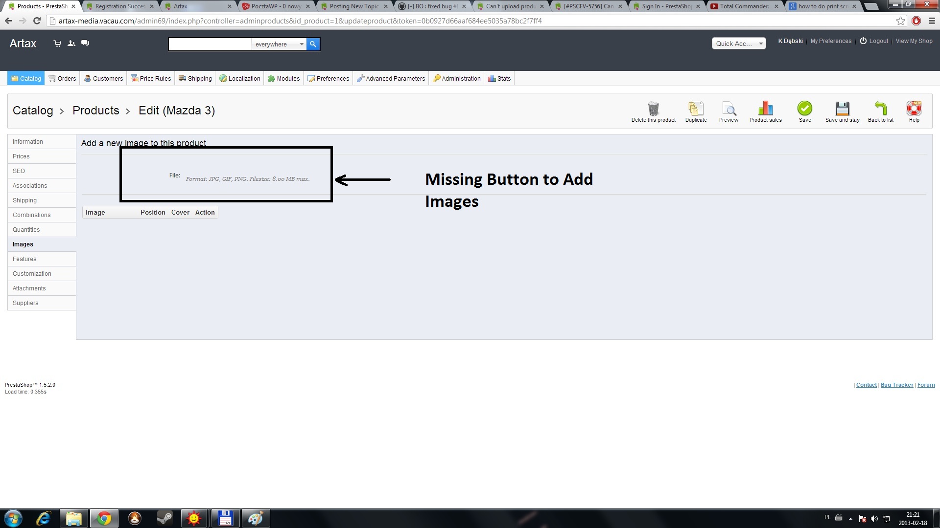 The problem I have is an missing "Add Image" button in my products (check added screen) and in this particulary way I can't add any images to my products.