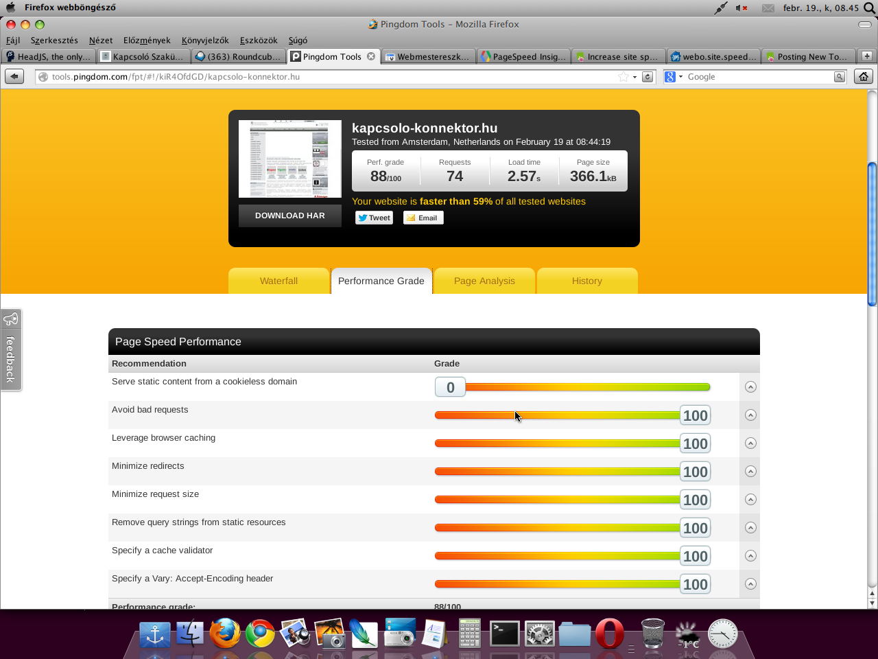 Igazából ez, illetve a CDN használata hiányzik az optimizátor guruk ( pingdom tools, pagespeed insight ) szerint.