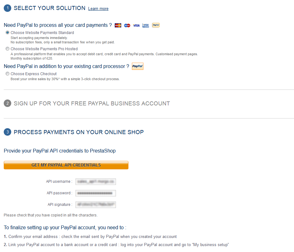 R Santos Posted October 17, 2014 Share Posted October 17, 2014 I finally managed to figure out a solution to this problem, not a very pretty one mind, but it worked. First thing is to go into your PayPal payment module and select Website Payments Standard, you will be then presented with 3 input boxes for the API credentials. Log in to your PayPal account and create a new set of API credentials. Copy each one into the appropriate box like so. paypal-api.PNG Now save these settings. Go back into the PayPal module now and this time select Payments Pro and enter in your PayPal Pro email address associated with your account. paypal-pro.PNG You should now have a working desktop and mobile theme website. If you are using PayPal Website Payments Pro and want to use a desktop and mobile theme this solution should work. Thanks. Thank you for sharing this, worked like a charm!!! Link to comment Share on other sites More sharing options...
