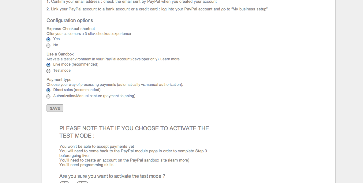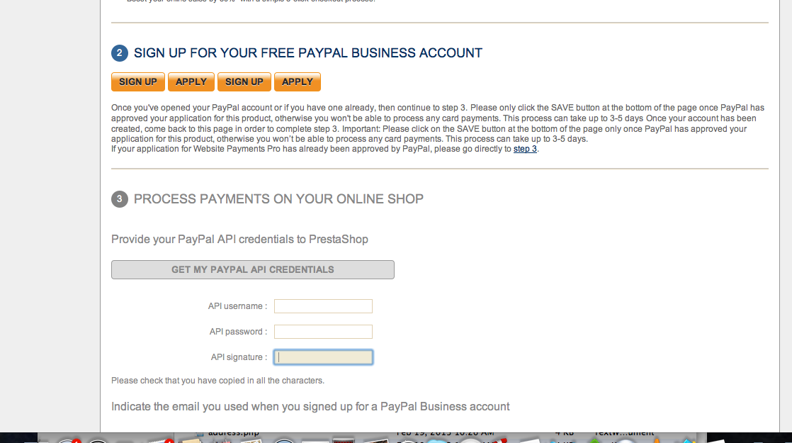 Artem Posted February 23, 2013 Share Posted February 23, 2013 Hi. I've created an account with paypal. In paypal module, it says that you have to wait for 3-5 days for it to get working. Now i waited over 7 days. I still cant make any changes to paypal module. when i try to save it, it renews the page but no changes is made. cant get API credentials, doesnt redirect me no does anything, just jumps to the top of the page. Please tell me what can be the issue? im using backward compability also. ps v1.4.9 paypal v3.4.5 may be its due to paypal version? cause before i used an older one on previous hosting, and seemed to be fine, yet i had to change hosting and now im stuck with this issue. please help me out, im stuck with this problem for a while now Link to comment Share on other sites More sharing options...