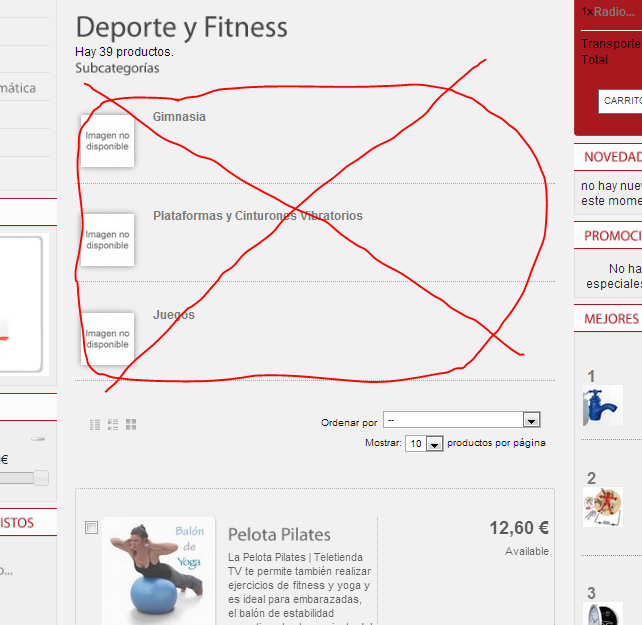 ...pues bien, en esta subpagina aparecen en la parte central: las subcategorias que forman parte de la categoría seleccionada y todos los productos que están dentro de dicha categoría,