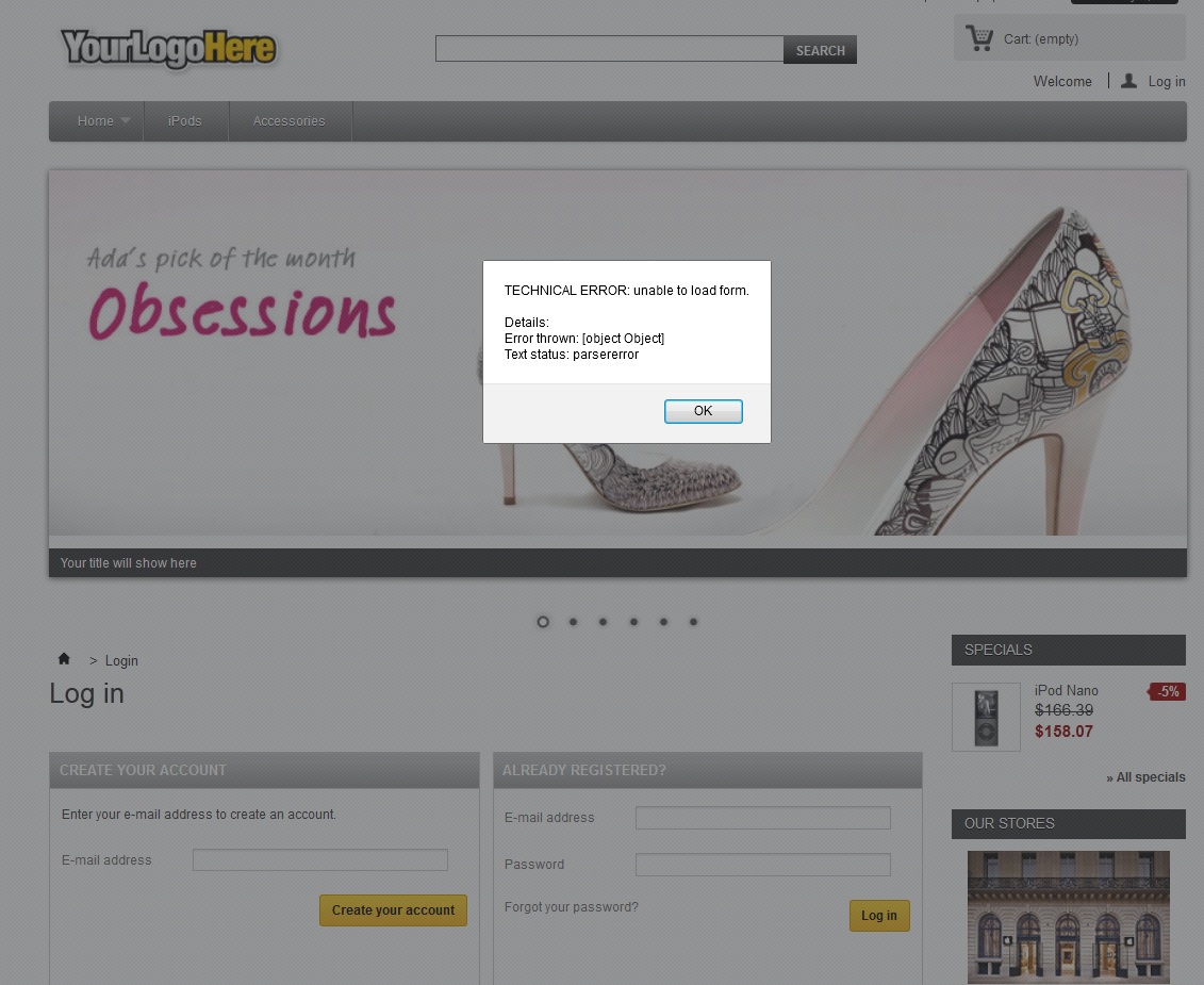 I'm trying to create a module for prestashop 1.5x and if I add html code I have this error on the login page: