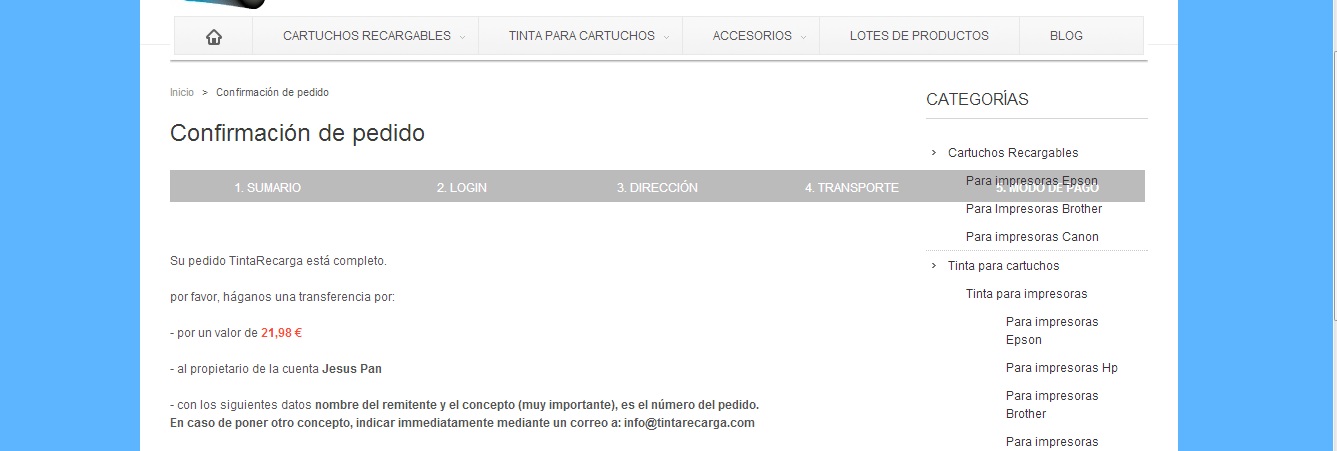 manusantana.com Posted March 26, 2013 Share Posted March 26, 2013 Es fácil. 1º) Tienes que quitar las compilaciones CCC que hace Prestashop. 2º) Con cualquiera de los navegadores actuales (por ejemplo Firefox tiene Firebug que es muy bueno). 3º) Botón derecho y te sale el nombre del estilo. Si quieres puedes enviar el enlace y te digo la ruta exacta. Otras opciones sin tocar css. ¿Has probado a editar el hook cuando tienes la confirmación de pedido? Añades la exepción que te salga ahí y ya está... no creo que aclaré mucho las categorías a alguien que ya te ha comprado. Suerte! Link to comment Share on other sites More sharing options...