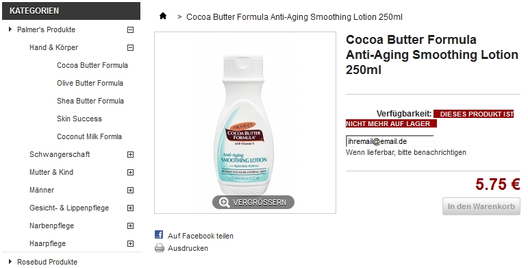 eleazar Posted February 27, 2013 Share Posted February 27, 2013 (edited) lol Wie wäre es denn alternativ mit der Meldung "z.Z. nicht vorrätig". Die würde auch keinen Zeilenumbruch erzwingen. ie Variable, um die es hier geht, heißt availability_value. Das könnte ich dann eben in der Übersetzung ändern. Den englische Text kannst du deshalb nicht ändern, weil das englische Sprachpaket der Standard ist. Das merkst du spätestens dann, wenn du irgendeine php-Datei im Verzeichnis translations/en öffnest. lediglich fields.php und pdf.php enthalten Bezeichner. Die andern sind leer, weil der Text fest einprogrammiert ist Leider fehlen wichtige Punkte, z.B. ist der Text "in stock" im Back Office in der Übersetzungs-section product.js nirgendwo zu ändern. Die Farbdarstellung hängt natürlich immer vom Template ab, bei uns ist sie anders. Den roten Hintergrund im Standard-Template kannst du in der css/product.css in Zeile 199 ändern (gilt für Version 1.5.3 - sonst als Anhaltspunkt: nach Section idTabs a oder nach availability_value suchen). Farbe Rot findest du hier: .idTabs a{ background-color: #f5dba6 !important; } Aber Vorsicht beim Ändern, denn das betrifft auch andere Tabs! Deswegen steht dahinter auch als Kommentar important. Den Text kannst du wie folgt ändern. Da es sich hier um eine Javascript-Funktion handelt, beim jeweiligen Template /js/product.js aufrufen. Um künftig statt "in stock" lieber "Auf Lager" angezeigt zu bekommen: $('#availability_value').text(availableNowValue); ändern in: $('#availability_value').text('Auf Lager'); Die entsprechende Änderung für "z. Zt. nicht vorrätig" (availableLaterValue) kann man entsprechend in Zeile 267 anpassen. $('#availability_value').text(availableLaterValue); Edited February 27, 2013 by eleazar (see edit history) Link to comment Share on other sites More sharing options...
