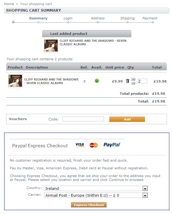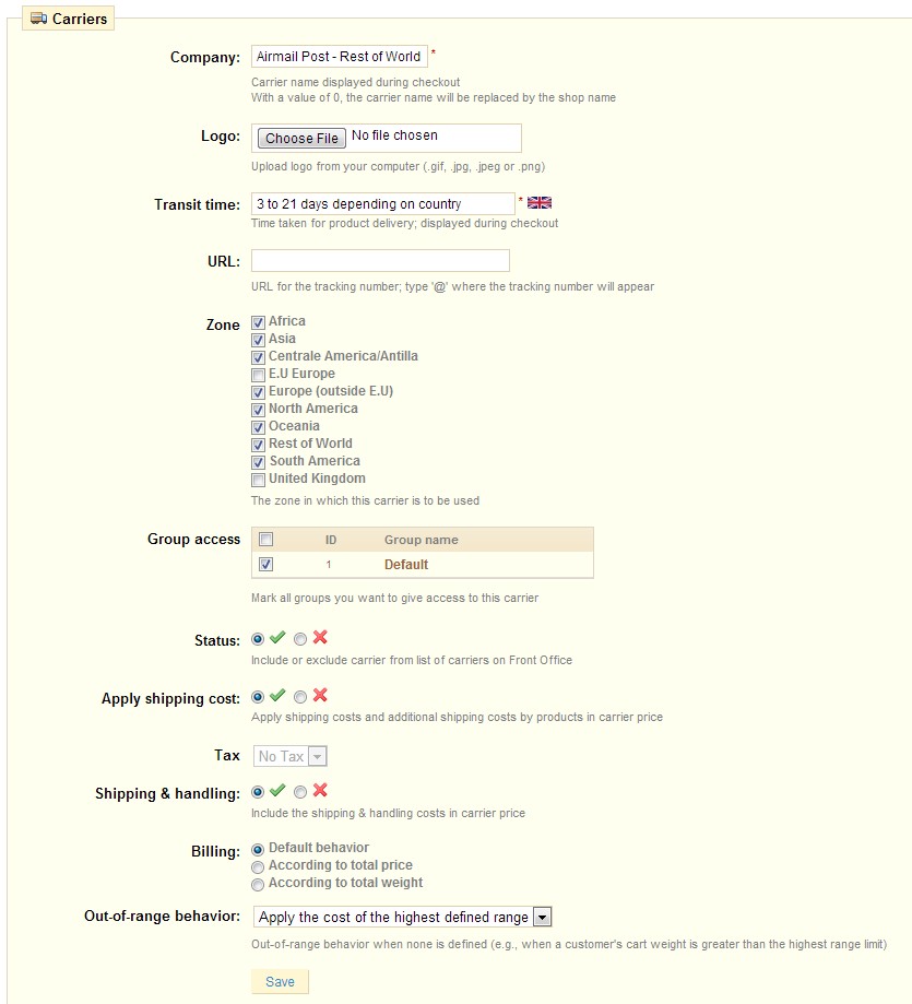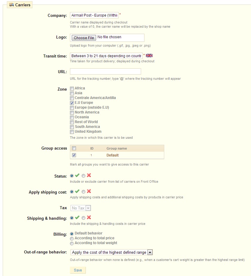 BlizzardUK Posted February 25, 2013 Share Posted February 25, 2013 (edited) My UK postage (default) works fine, but for some reason overseas isn't working. Any ideas ? I have attached pictures below to show what I mean and of front and back office. As you can see from the front office pic, it shows up as £0 for Ireland, when that is set for Europe EU. Same happens to all countries tried, except the UK which works. Also, is there any worthwhile advantage to going from 1.4.8.2 to 1.5 ? Thanks in advance !! Edited February 25, 2013 by BlizzardUK (see edit history) Link to comment Share on other sites More sharing options...