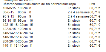 michaeldesch Posted March 4, 2013 Author Share Posted March 4, 2013 Problème résolu ! Explication : On a un produit avec un prix de 90 € avec 3 déclinaisons. Selon les déclinaisons il y a un impact 10 € 30€ 40€. si l'impact est de 0 il faut afficher le prix d'origine (90€) sinon on calcule le prix plus l'impact Voici le code : <thead> <!-- En-tête du tableau --> <tr> <th>Réference</th> {foreach from=$groups item='attributearray' key='groupindex'} <th>{$attributearray.name}</th> {/foreach} <th>Prix</th> </tr> <tbody> <!-- Corps du tableau --> {foreach from=$combinations item='combination' key='combinationId'} <tr> <td>{$combination.reference}</td> {foreach from=$combination.attributes_values item='a' key='groupindex'} <td>{$a}</td> {/foreach} {if $priceDisplay >= 0 && $priceDisplay <= 2} {if $combination.price != 0} <td>{convertPrice price=$combination.price + $product->price}</td> {else} <td>{convertPrice price=$productPrice}</td> {/if} {/if} </tr> {/foreach} </tbody> </thead> Link to comment Share on other sites More sharing options...