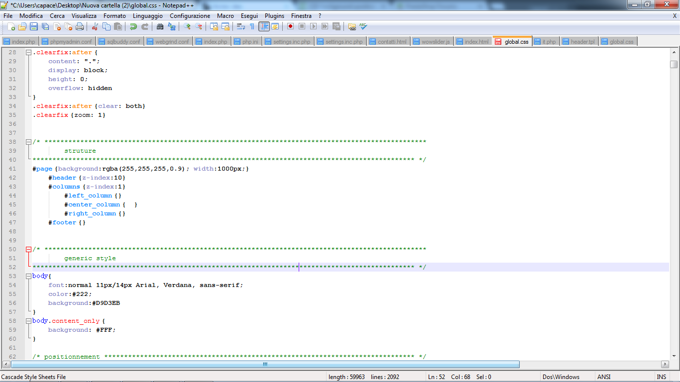 capace19 Posted March 3, 2013 Share Posted March 3, 2013 salve, vorrei impostare uno sfondo bianco trasparente per, ed uno colore di sfondo per tutta la pagina, su global.css alla riga 41 ho impostato #page {background:rgba(255,255,255,0.9); width:1000px;} e poi il colore di sfondo alla riga 56. vorrei che il colore trasparente avesse una piccola eccedenza da entrambi i lati rispetto alla colonna centrale, invece come si vede in figura, mi viene allineato a sinistra. mi potete aiutare a centrarlo? grazie luca Link to comment Share on other sites More sharing options...