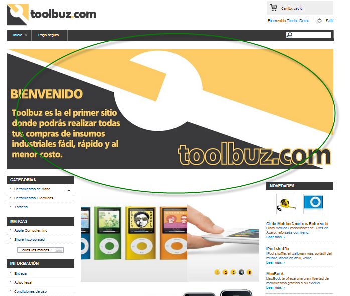 nadie Posted March 3, 2013 Share Posted March 3, 2013 Antes que nada, GRACIAS ABSOLUTAS! Muy muy cerca de lograrlo.... Algunos problemas ya que el slider me tapo la barra (no visualmente pero si funcionalmente.... el wrapper me quedó montado sobre la barra pero las imagenes agarran bien los 40 px de topmargin... Respecto a eso, dime la url de tu tienda, asi sera mas facil decirte los ajustes para tu tienda. Por otro lado, note que no solo aparece en la pagina principal sino que en todas... se puede agregar una excepción para todo el resto? Me ayudarían con eso?? Respecto a esto... En la pestaña Módulos -> Posiciones edita el modulo que se llama "Imagen de control deslizante ..." Y dentras veras un bloque llamado "Excepciones". En Excepciones, coloca donde no quieres que se muestre el módulo. Tambien puedes puedes hacer esto que te comento ahora a modo "chapuza express" depende lo otro que te he comentado: Fichero: modules/homeslider/homeslider.tpl Busca esto: {if isset($homeslider)} <script type="text/javascript"> {if isset($homeslider_slides) && $homeslider_slides|@count > 1} {if $homeslider.loop == 1} var homeslider_loop = true; {else} var homeslider_loop = false; {/if} {else} var homeslider_loop = false; {/if} var homeslider_speed = {$homeslider.speed}; var homeslider_pause = {$homeslider.pause}; </script> {/if} {if isset($homeslider_slides)} <ul id="homeslider"> {foreach from=$homeslider_slides item=slide} {if $slide.active} <li><a href="{$slide.url|escape:'htmlall':'UTF-8'}" title="{$slide.description|escape:'htmlall':'UTF-8'}"><img src="{$smarty.const._MODULE_DIR_}/homeslider/images/{$slide.image|escape:'htmlall':'UTF-8'}" alt="{$slide.legend|escape:'htmlall':'UTF-8'}" legend="{$slide.description|escape:'htmlall':'UTF-8'}" height="{$homeslider.height|intval}" width="{$homeslider.width|intval}" /></a></li> {/if} {/foreach} </ul> {/if} Y dejalo así: {if $page_name=='index'} {if isset($homeslider)} <script type="text/javascript"> {if isset($homeslider_slides) && $homeslider_slides|@count > 1} {if $homeslider.loop == 1} var homeslider_loop = true; {else} var homeslider_loop = false; {/if} {else} var homeslider_loop = false; {/if} var homeslider_speed = {$homeslider.speed}; var homeslider_pause = {$homeslider.pause}; </script> {/if} {if isset($homeslider_slides)} <ul id="homeslider"> {foreach from=$homeslider_slides item=slide} {if $slide.active} <li><a href="{$slide.url|escape:'htmlall':'UTF-8'}" title="{$slide.description|escape:'htmlall':'UTF-8'}"><img src="{$smarty.const._MODULE_DIR_}/homeslider/images/{$slide.image|escape:'htmlall':'UTF-8'}" alt="{$slide.legend|escape:'htmlall':'UTF-8'}" legend="{$slide.description|escape:'htmlall':'UTF-8'}" height="{$homeslider.height|intval}" width="{$homeslider.width|intval}" /></a></li> {/if} {/foreach} </ul> {/if} {/if} Link to comment Share on other sites More sharing options...