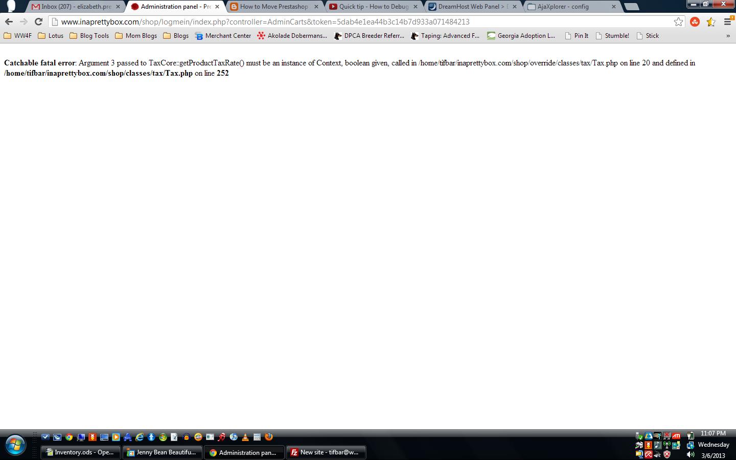 tebarry Posted March 7, 2013 Share Posted March 7, 2013 I was thrown a 500 Internal Server Error several times and enabled debugging mode in my config folder. I'm getting the same error across the board. Catchable fatal error. Something to do with product tax rates and overrides. I'm extremely new to ftp and such, so I'd love to help with step by step instructions on how to fix it. I've attached a screenshot of the error if you can help! Thanks! Link to comment Share on other sites More sharing options...