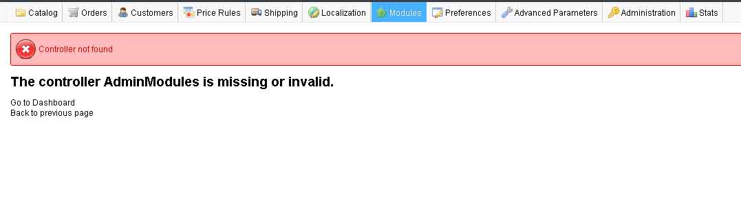 Kursulla Posted March 9, 2013 Share Posted March 9, 2013 Hi all, I am facing very strange and annoying problem. From some reason, I cant open Modules page. I click on Modules in menu an I get error that AdminModules controller is missing or invalid. You can check error on image in attachment. Controller is, of course, there. I did not change none of modules, or template. I turned off caching, clear cache, but problems remain. It is frustrating because I am like 5 days toproduction launch. Please, somebody help me? I am on PrestaShop 1.5.3.1. Link to comment Share on other sites More sharing options...