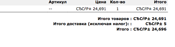 mazapura Posted March 11, 2013 Share Posted March 11, 2013 (edited) если в PDF-е, то попробуйте: код /classes/PDF.php static private function convertSign($s) { return str_replace('¥', chr(165), str_replace('£', chr(163), str_replace('€', chr(128), $s))); } заменить на static private function convertSign($s) { return iconv("UTF-8", "windows-1251", $s); } добавить в /tools/fpdf/font шрифт verdana и в меню Back Office > Orders > PDF вьіберите кодировку cp1251 и шрифт Verdana. Кажется все Edited March 11, 2013 by mazapura (see edit history) Link to comment Share on other sites More sharing options...