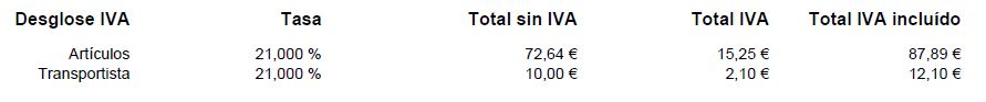 Actualmente, en el desglose al final de la factura, me separa artículos y transporte.