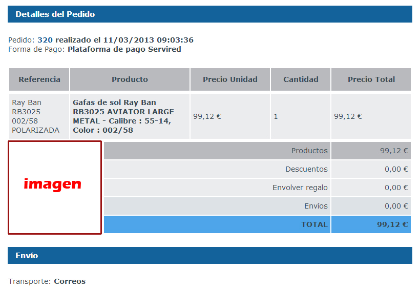 pepe86 Posted March 11, 2013 Share Posted March 11, 2013 Buenas a tod@s!! me gustaría saber si hay forma de mostrar la imagen del producto vendido en el email que se envía al cliente tras confirmar el pedido (en la plantilla order_confirm.html). Adjunto imagen de lo que me gustaría conseguir. Alguien me puede guiar un poco?? gracias. Link to comment Share on other sites More sharing options...