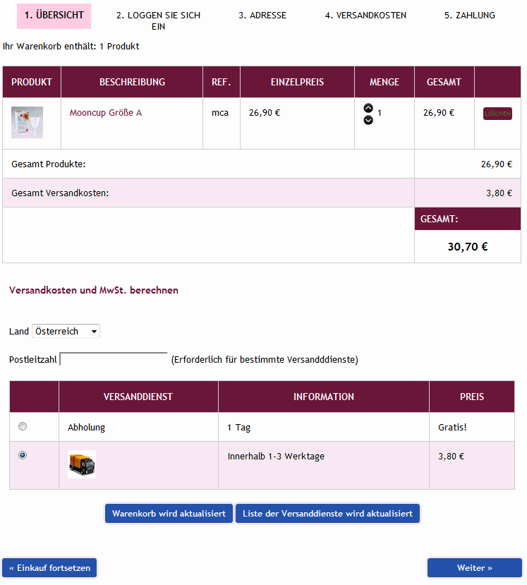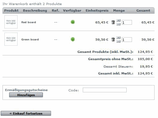 Feetschi Posted March 12, 2013 Share Posted March 12, 2013 (edited) Hallo Leute, (PrestaShop™ 1.5.3.1) ich bin gerade beim Einrichtunge meines Webshops. Wenn jemand ein Produkt bestellt, und zur Kasse geht, dann kommt unten immer der Punkt Versandkosten und MWSt. berechnen (siehe bestell.gif). Ich möchte aber, das der Punkt wegfällt, da man am schluss ja auch nochmals Versandkosten auswählen kann (siehe bestell-richtig.gif) Wie bekomm ich diesen Punkt weg? Danke! Edited March 12, 2013 by Feetschi (see edit history) Link to comment Share on other sites More sharing options...