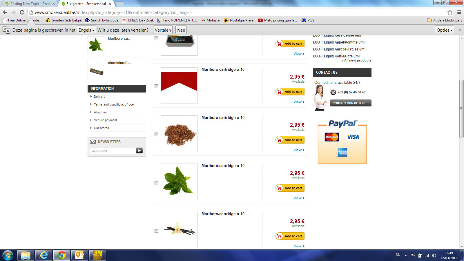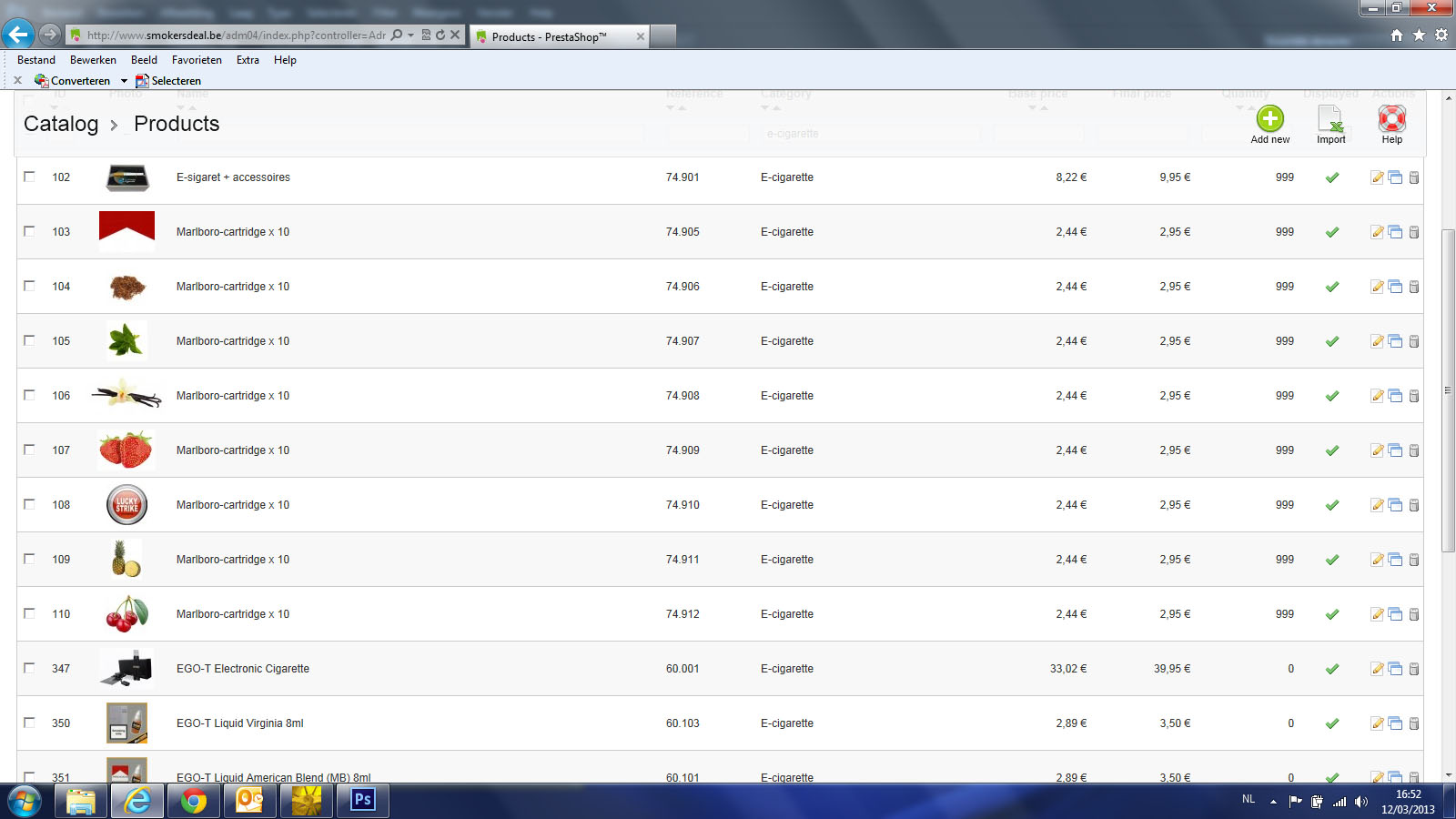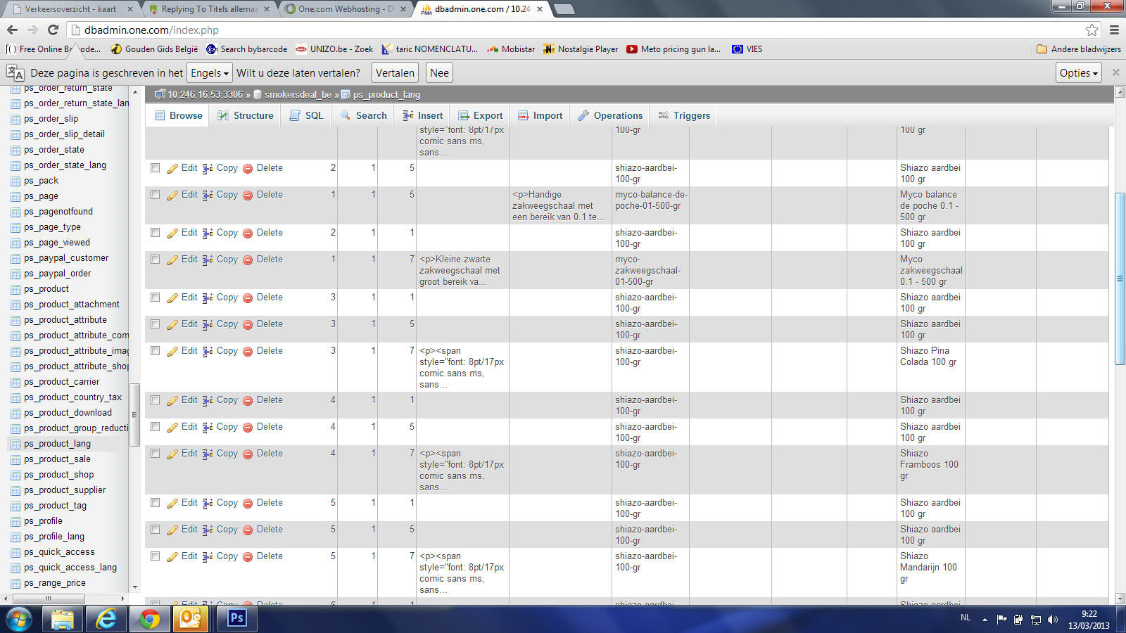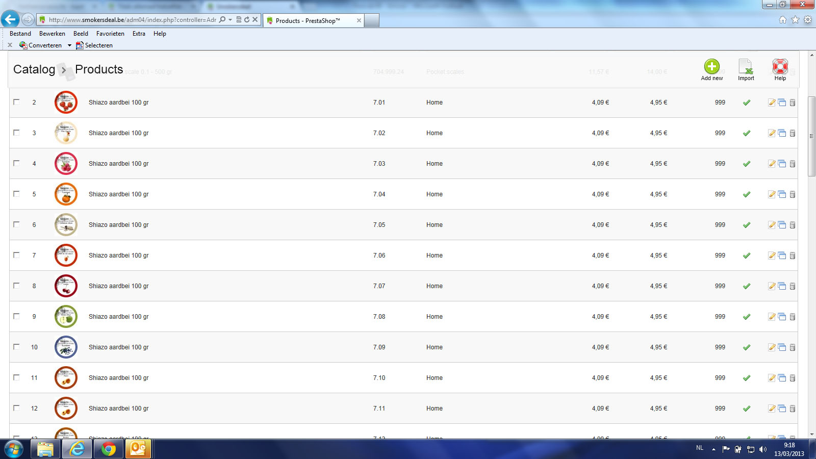 invicsa Posted March 12, 2013 Share Posted March 12, 2013 Hallo, Ik hoop dat iemand me hier verder kan helpen, want ik zit op zn' zachtst gezegd met de handen in het haar. Ik heb de voorbije weken prestashop 1.5.3.1 geinstalleerd en hierop een paar honderden producten ingevoerd (www.smokersdeal.be. Nu zie ik dat alle titels hetzelfde zijn en ik kan ze ook niet veranderen. In Chrome is het zeker probleem, in explorer soms niet. Het probleem ontstaat blijkbaar ook als je een artikel kopieert en dan bewerkt. In bijlage heb ik een screenshot van chrome, een van explorer en 1 van de backoffice om het probleem te illustreren. Indien iemand mij met raad en daad kan bijstaan (vrijwillig of betalend) dan zou mijn leven terug betekenis krijgen... :-) Link to comment Share on other sites More sharing options...