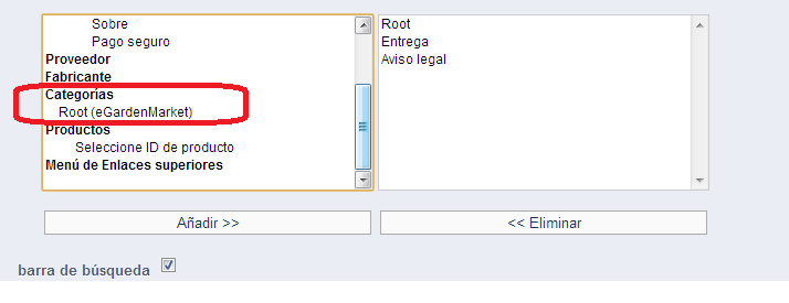 yeyuix Posted March 13, 2013 Author Share Posted March 13, 2013 Buenas. Como ya he conseguido solucionar mi problema, comparto la solución. Resulta que revisando mis categorías me he dado cuenta que la propiedad "Mostrados" de la categoría Inicio o categoría raíz la tenía puesta en "NO" y al modificar esa propiedad y poner el radio button establecido en mostrados "SI" me han aparecido las categorías en mi configuración del menú horizontal. No sé decir cuando modifiqué esa propiedad, ni porqué, pero ahora ya lo tengo claro. Un saludo y siento si mi pregunta era un poco extraña o rebuscada, espero que pueda servir la solución por si le surge el mismo problema a otra persona. Link to comment Share on other sites More sharing options...