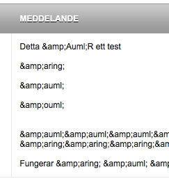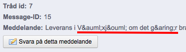 Bodie Posted March 12, 2013 Share Posted March 12, 2013 (edited) I have a problem with "Order Message". When a message is posted and special characters are used they are displayed as HTML code. For example å become å and ö become ö When I search for answers to this problem I can only find old messages saying it was fixed in an update or no answer at all. I am running Prestashop 1.5.3.1. This only happens when a message is posted in an order as an "order message" and it only affect 2 out of 3 locations. It will show the right letters when I view the message in the order, but it will show the wrong code when the message is read in the customer order page and in the customer service message page. When a message is posted through the "contact us" form everything works fine and all emaila is working and have the right characters. When I read a message in Customer Service When a customer read the message in hos own order. When the same message is read in the order and not the customer service. A normal message sent fro contact us form. Edited March 12, 2013 by Bodie (see edit history) Link to comment Share on other sites More sharing options...