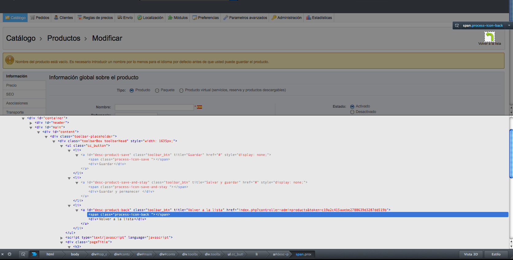 Lo más increíble, que a parte de que mi error sólo es que desaparece el botón de Guardar producto, todo lo demás funciona!, ... cuando decido no actualizar y volver a instalar en la raíz la copia ftp de la tienda anterior...1.5.2 (guardada en una carpeta por detrás), veo que también me ha desparecido el botón de guardar producto!!!! :o ..si no he tocado esos archivosss!