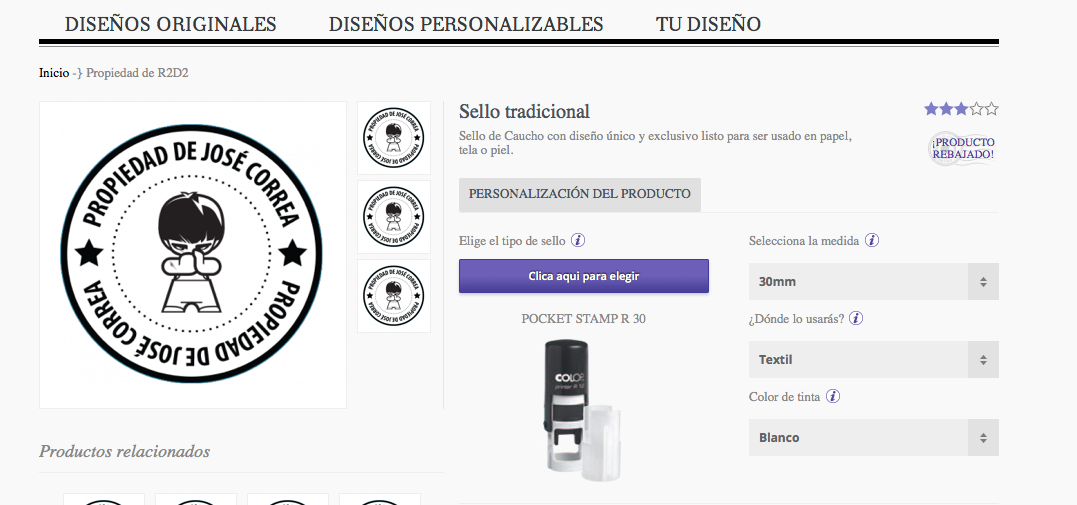 Estoy configurando un tienda de sellos de caucho, el producto es el DISEÑO que tiene cuatro variables: