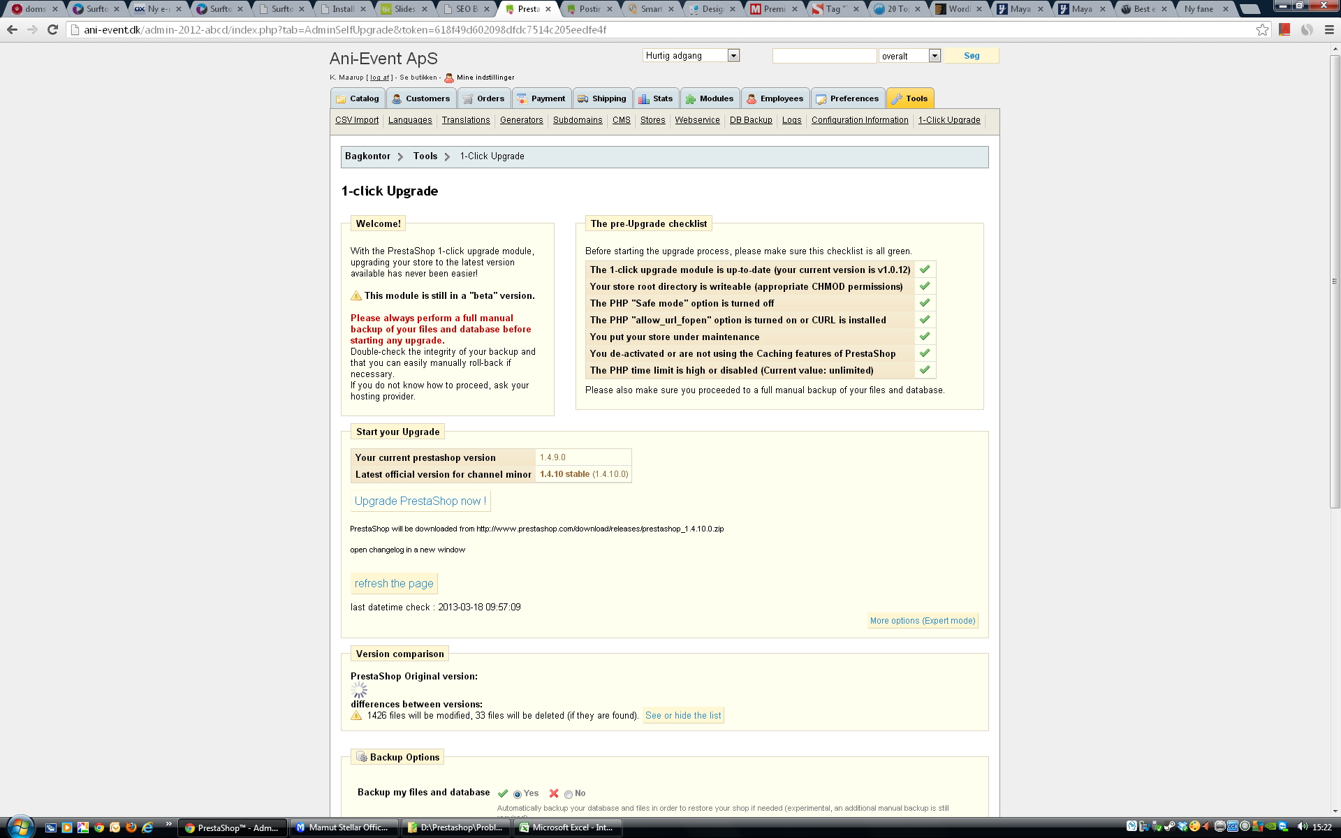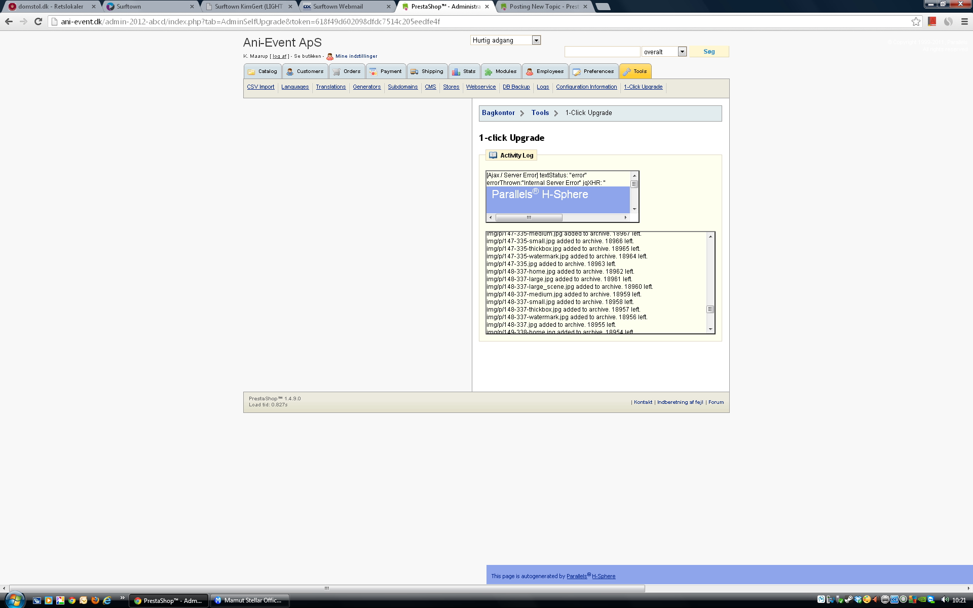 Kim Maarup Posted March 18, 2013 Share Posted March 18, 2013 (edited) After installing latest 1 click upgrade module, it should be no problem upgrading my existing 1.4.9 shop til 1,4.10. However the installation stops at this point: My hosting provider Surftown.dk has tried to locate the problem. However the server meets all the demands (including Ajax) for running the Prestashop. What could be the problem? I attach creendumps.. Errror mess in details: Edited March 18, 2013 by Kim Maarup (see edit history) Link to comment Share on other sites More sharing options...